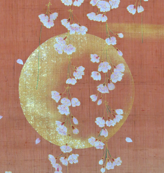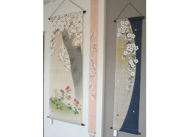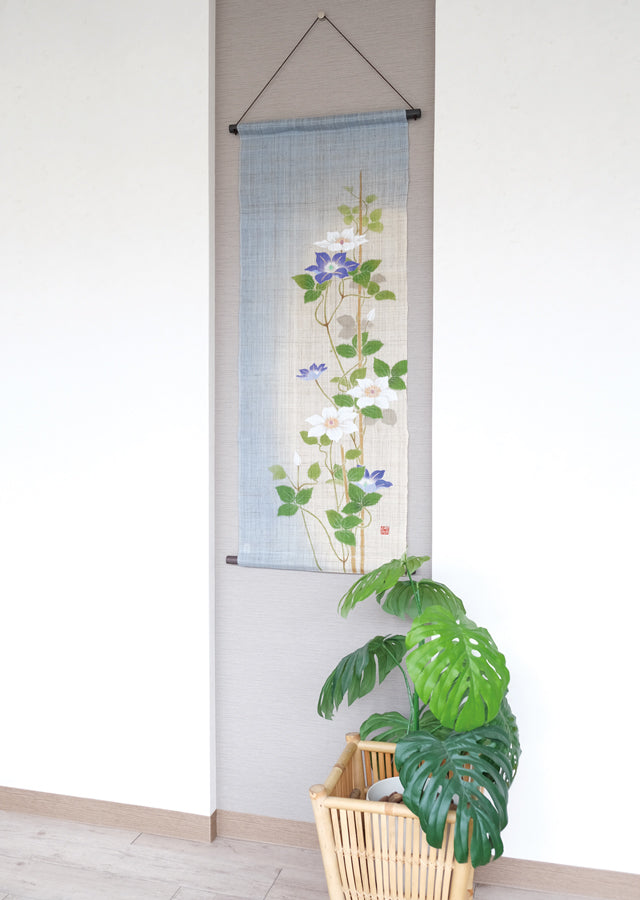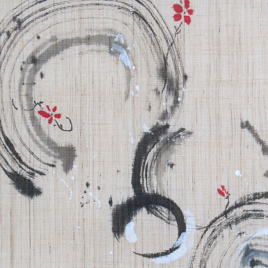 濡れ描き友禅 麻のれん(風と四季の花)