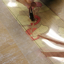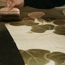 手彩色の特徴はフィルム原稿を使って同じ柄を何度でも素早く正確に表現出来る事です。 小さな刷毛で生地を擦りながら色を染めて行きます。綺麗にぼかす事もでき、細かな色の調整も出来るので、最近はよく使用されています。