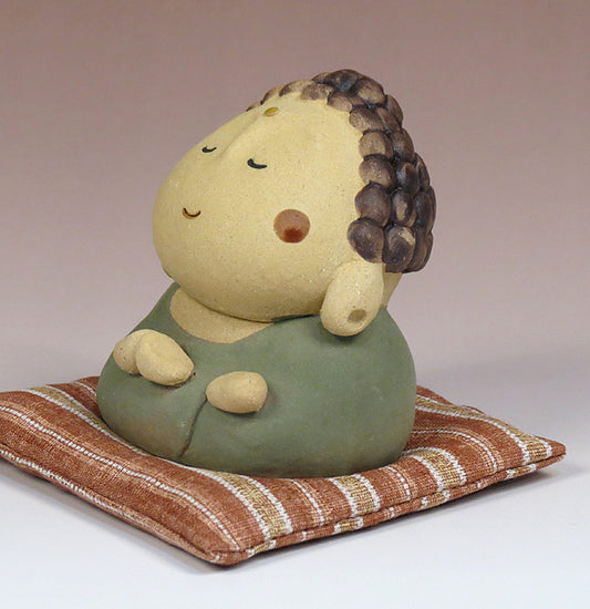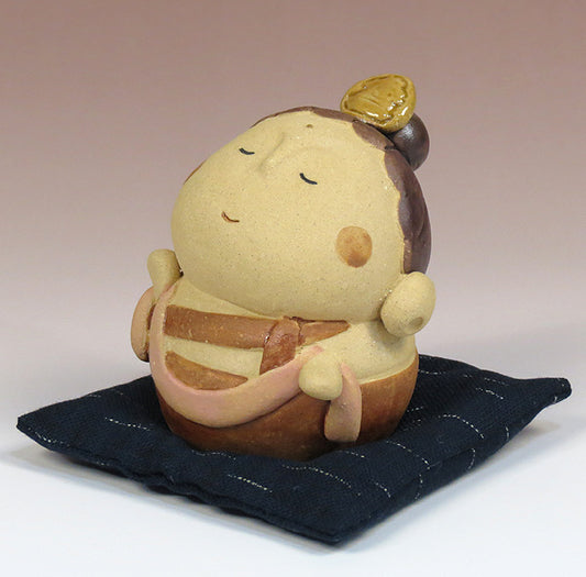 陶人形(文殊菩薩さん)座布団の柄はアソート