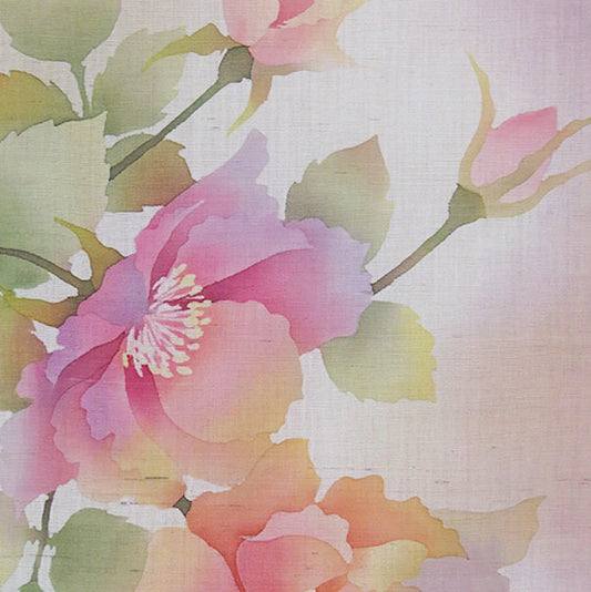 濡れ描き友禅 麻のれん(風と四季の花)