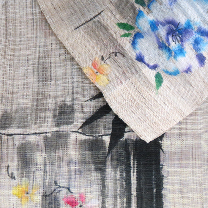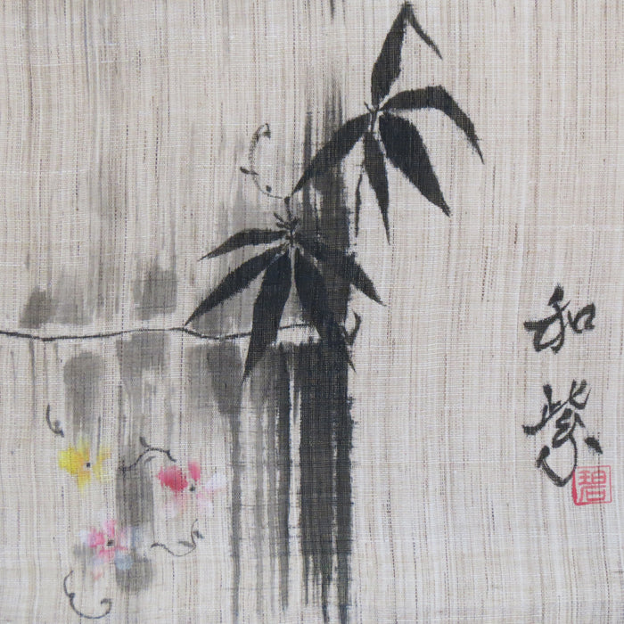 濡れ描き友禅 麻のれん(竹と花)