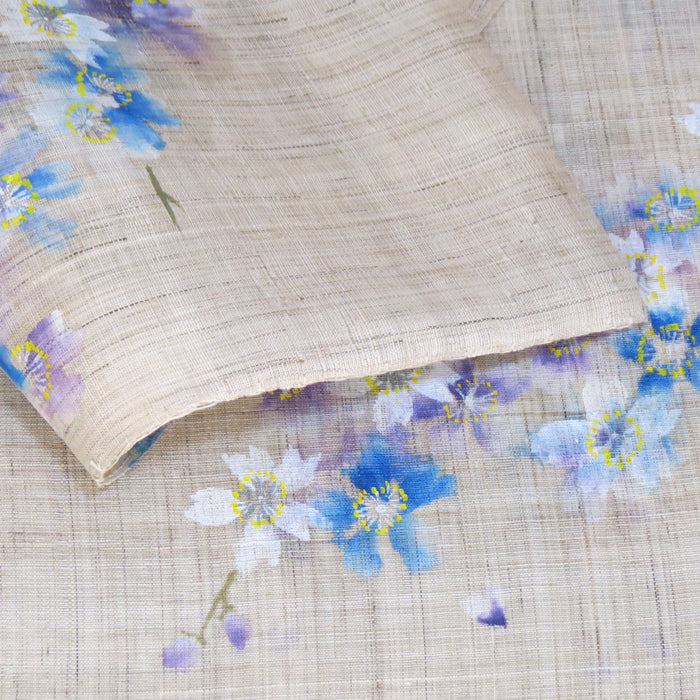 濡れ描き友禅 麻のれん(ブルー紫桜)