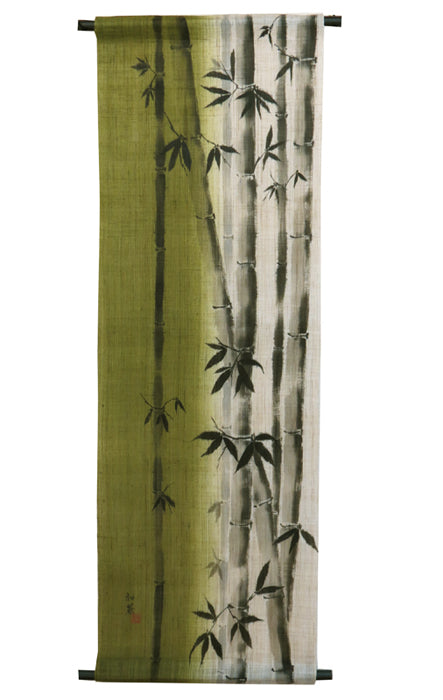 和風モダンタペストリー(竹林)濡れ描き友禅W約44×H130cm