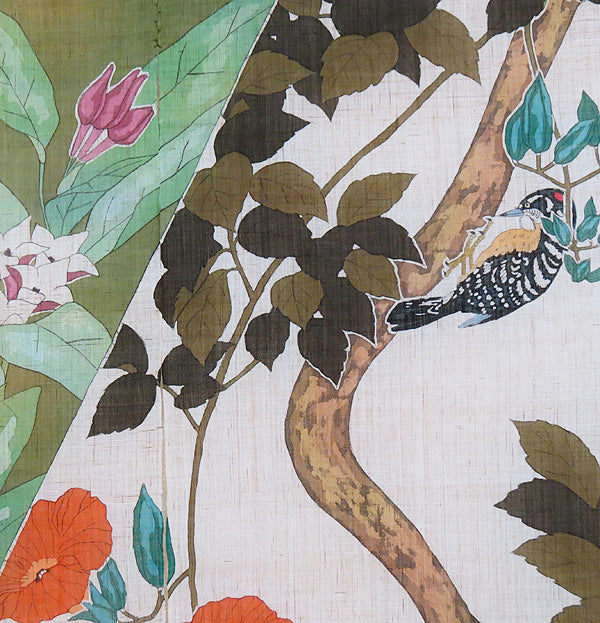 麻のれん (茶花とのうぜんかずら)/ 工房こるむ