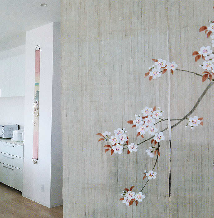 麻のれん(墨描き桜)