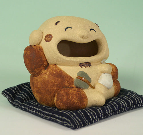 陶人形(わっはっはの布袋)座布団の柄はアソート